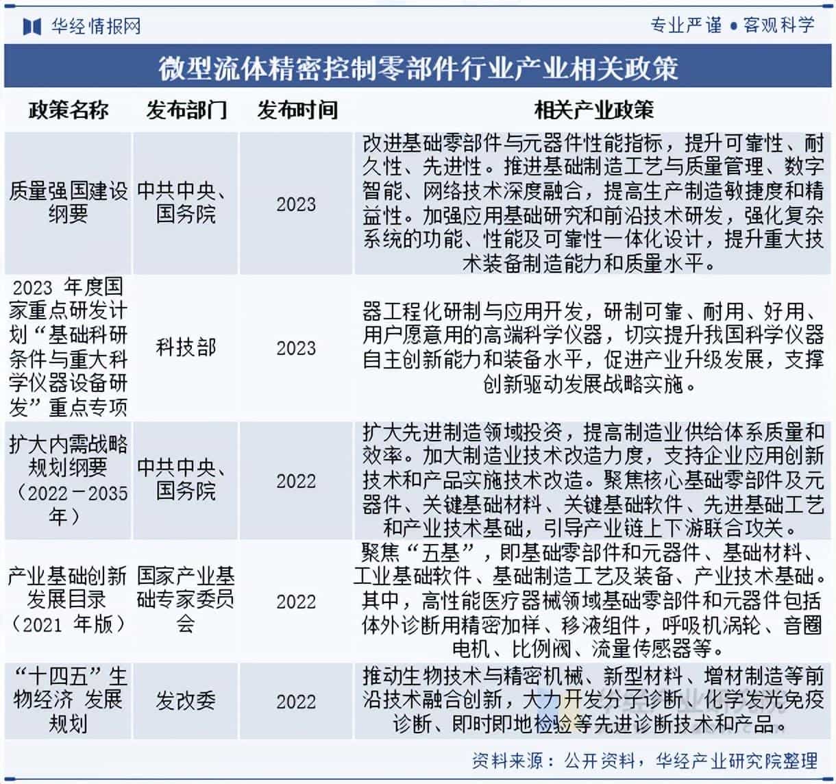 本文节选自华经产业研究院发布的《2023年中国微型流体精密控制零部件行业相关政策、产业链、市场规模、细分市场、竞争格局及重点企业分析「图」》,如需获取全文内容,可进入华经情报网搜索查看。